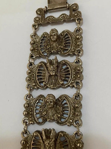 Antiga Pulseira Bracelete Cor Prata Desenho Deusa Guerreira
