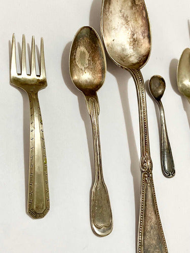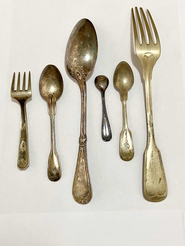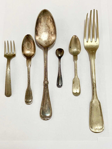 Antigas Colheres E Garfo Com Marca Wt & S - Wb Cor Prata