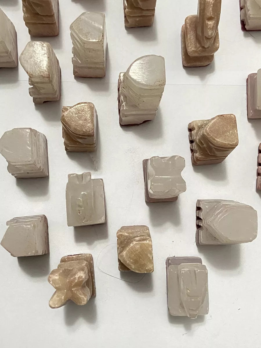 Antigas Peças De Xadrez Em Mármore Pedra Onix Asteca