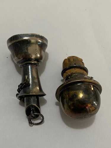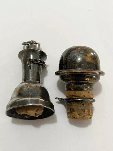 Conjunto de 2 bicos dosadores antigos em metal com detalhe em cortiça, ideais para garrafas de whisky, vinho ou licores.