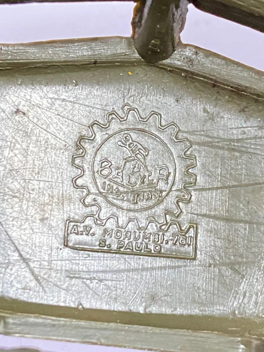 Miniatura original da marca Balila, fabricada em plástico rígido e com acabamento em verde militar, representando um caminhão militar equipado com um grande holofote giratório. Essa peça foi produzida no Brasil entre as décadas de 1960 e 1970 e se destaca pelo design robusto e pela raridade.