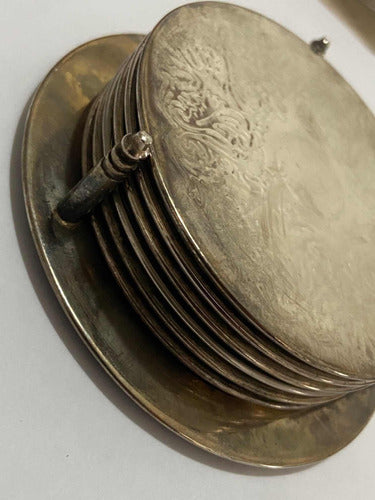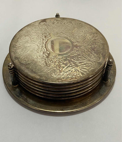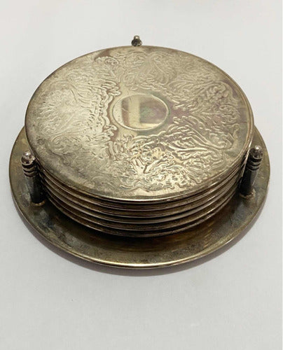Antigo Porta Copos Em Metal Espessurado A Prata Com Seis Uni