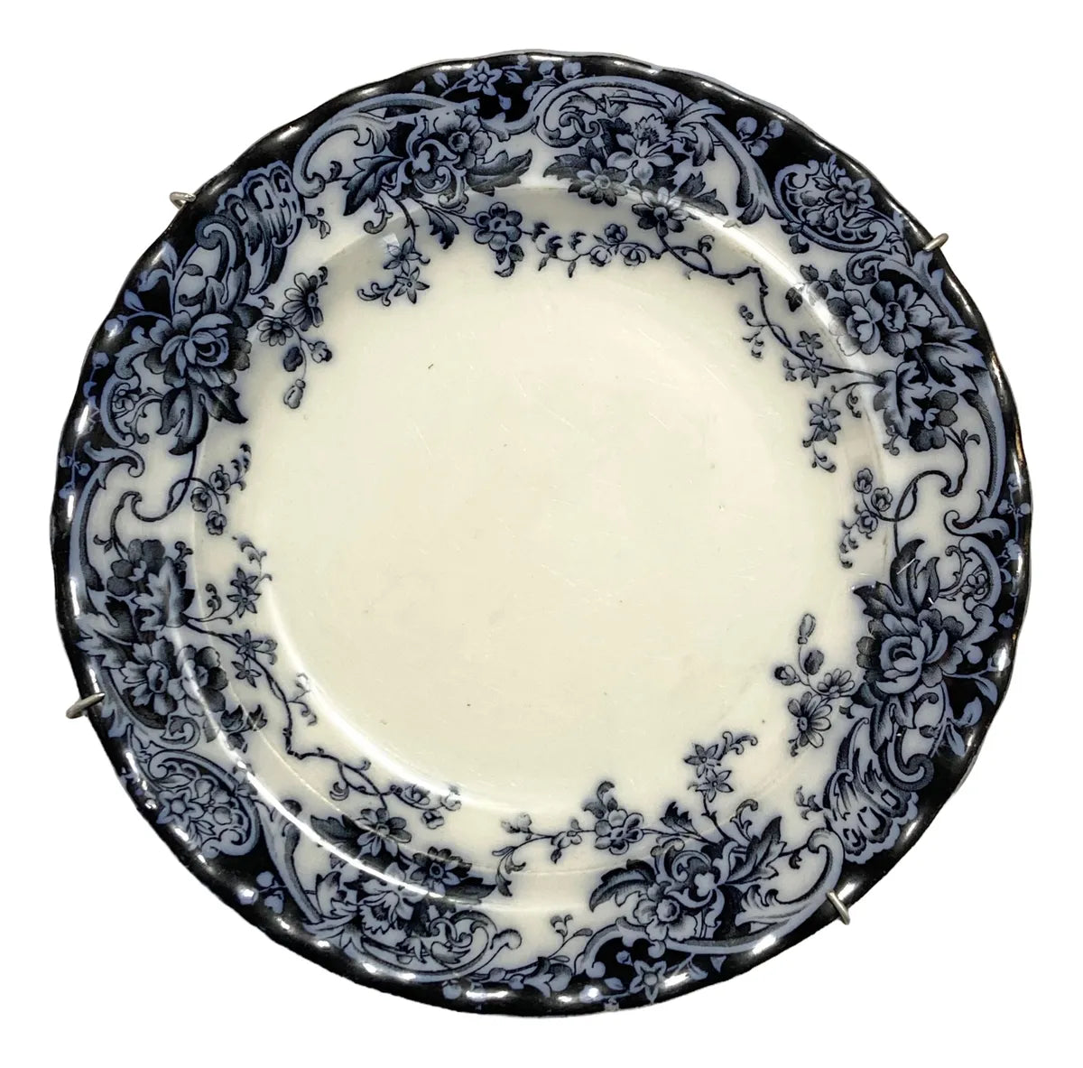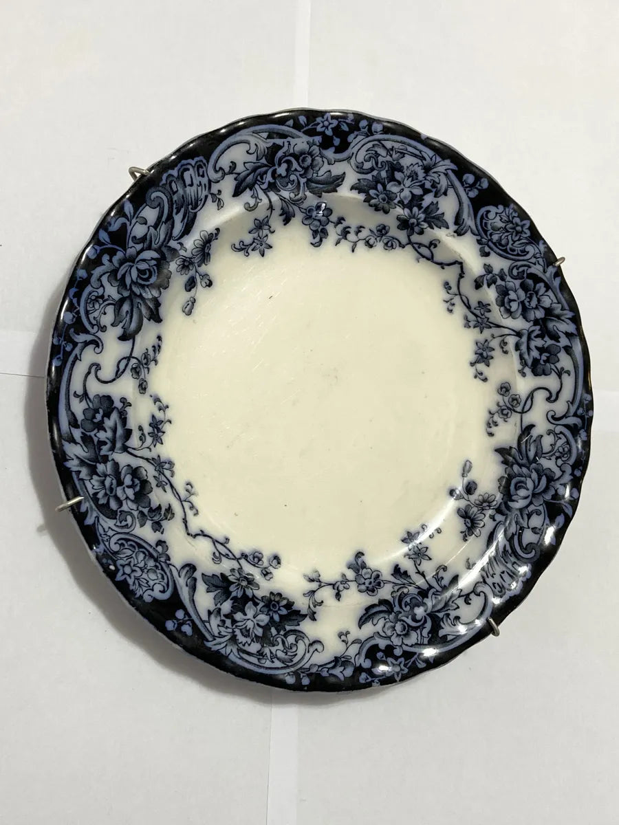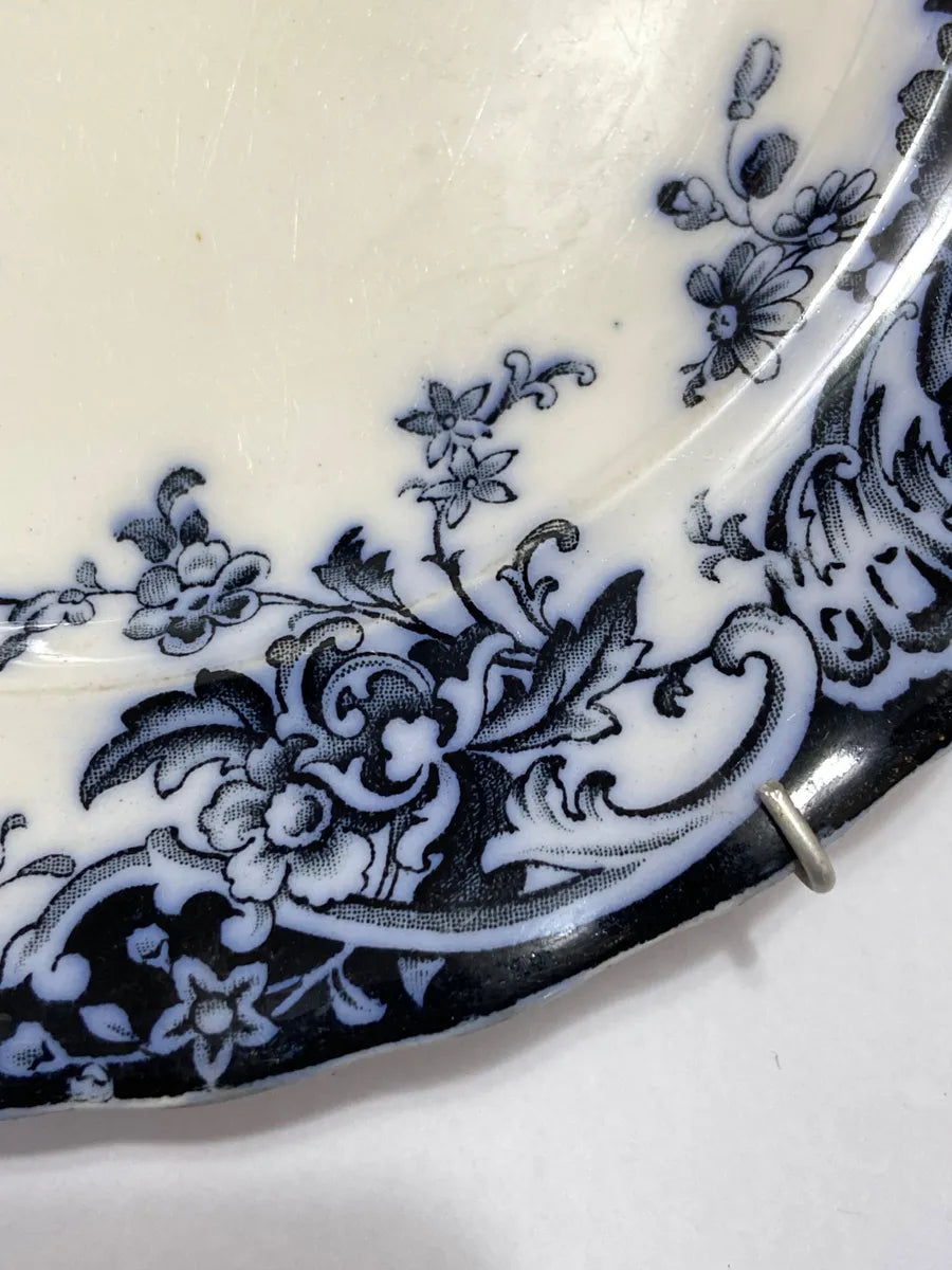 Prato antigo de faiança inglesa, padrão floral azul “Chatsworth”, marca K&C Late Mayers, c. final do século XIX. Em bom estado para a idade