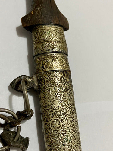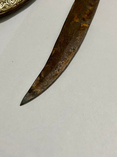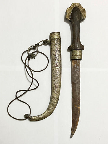 Punhal antigo artesanal de origem árabe ou norte-africana, modelo tradicionalmente conhecido como Jambiya ou Koummya, característico do Marrocos e outras regiões islâmicas.