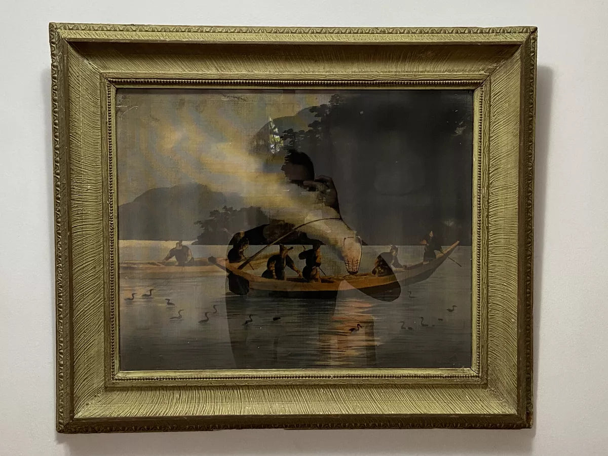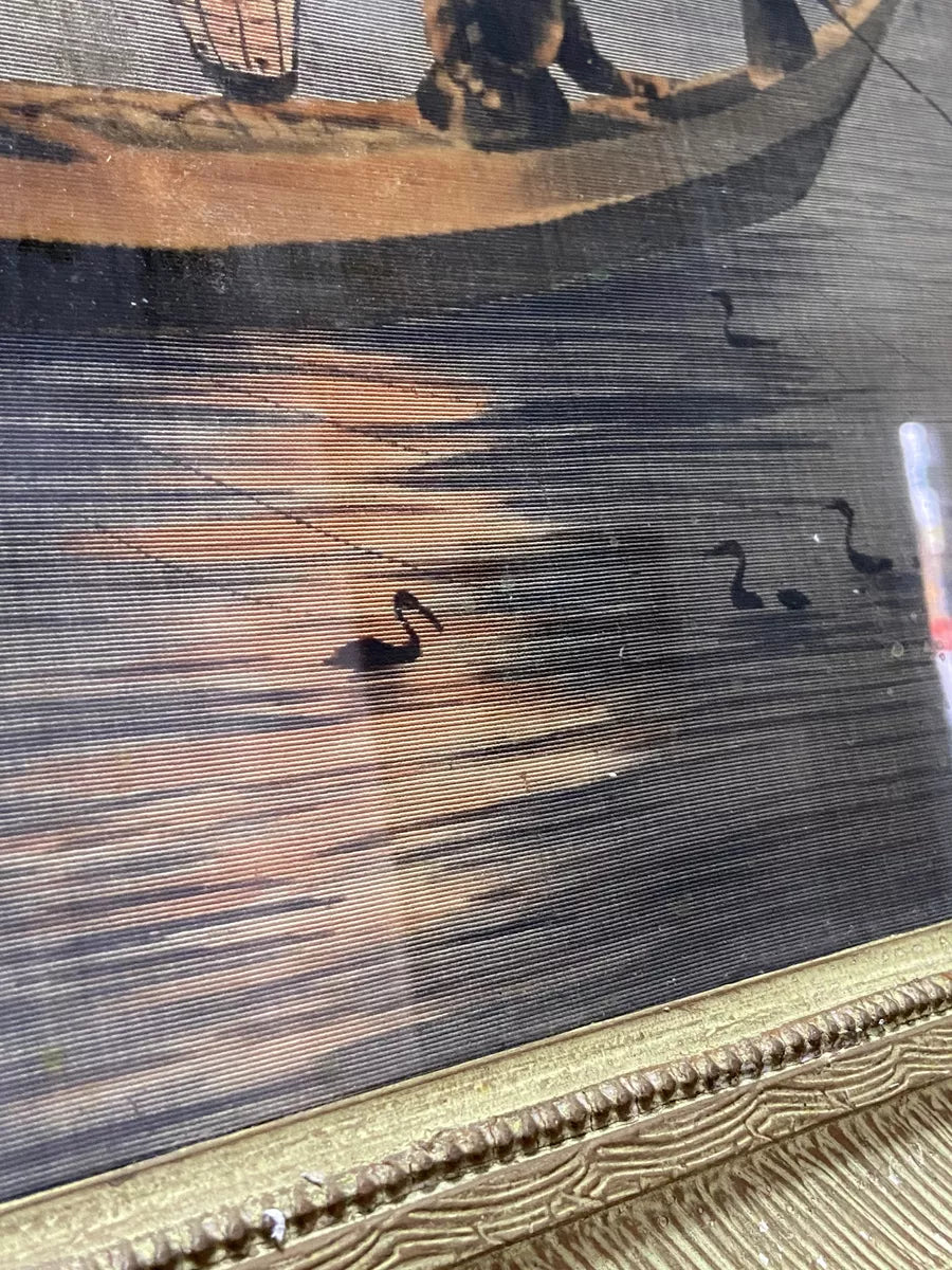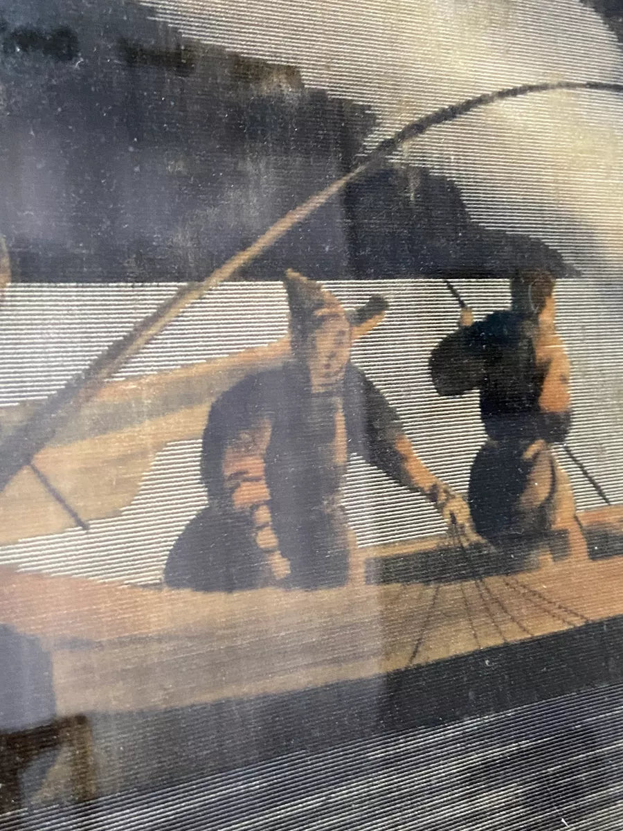 Antigo Quadro Representando Barco Pescadores Bela Moldura