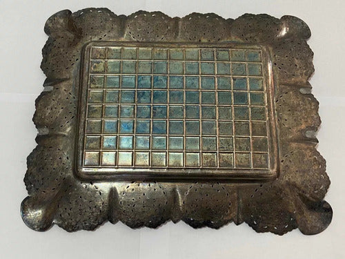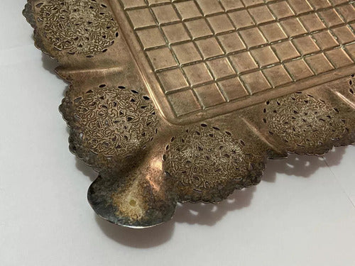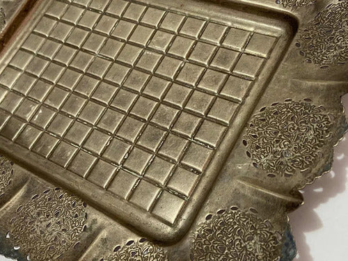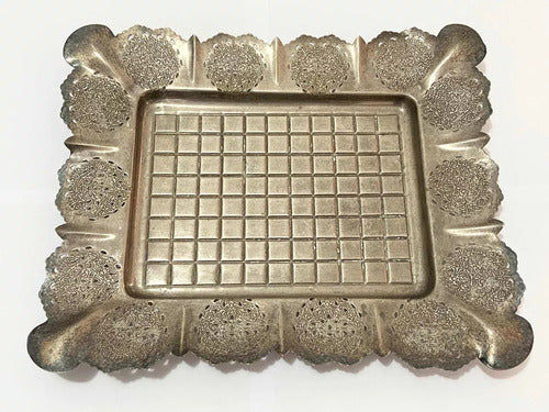 Bandeja Antiga De Metal Com Desenhos Retangular Cor Prata