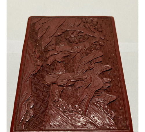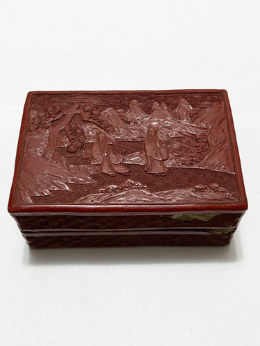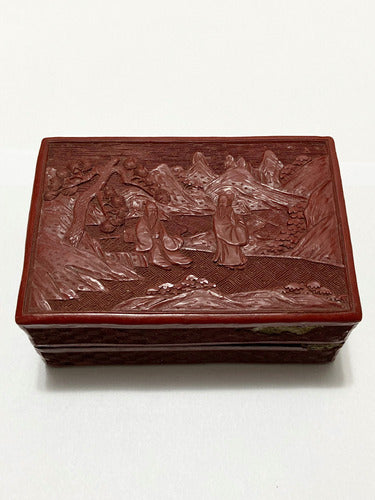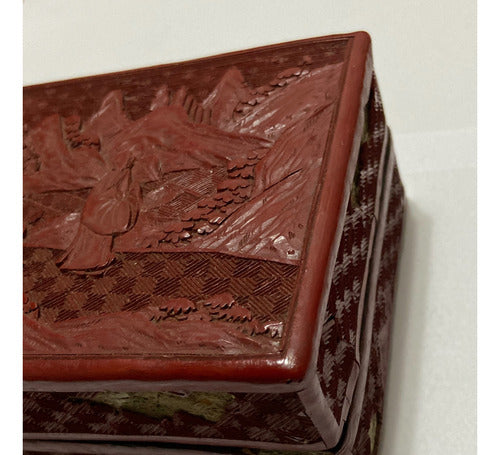 Caixa Antiga Porta Jóias Oriental Executada Em Laca Vermelha
