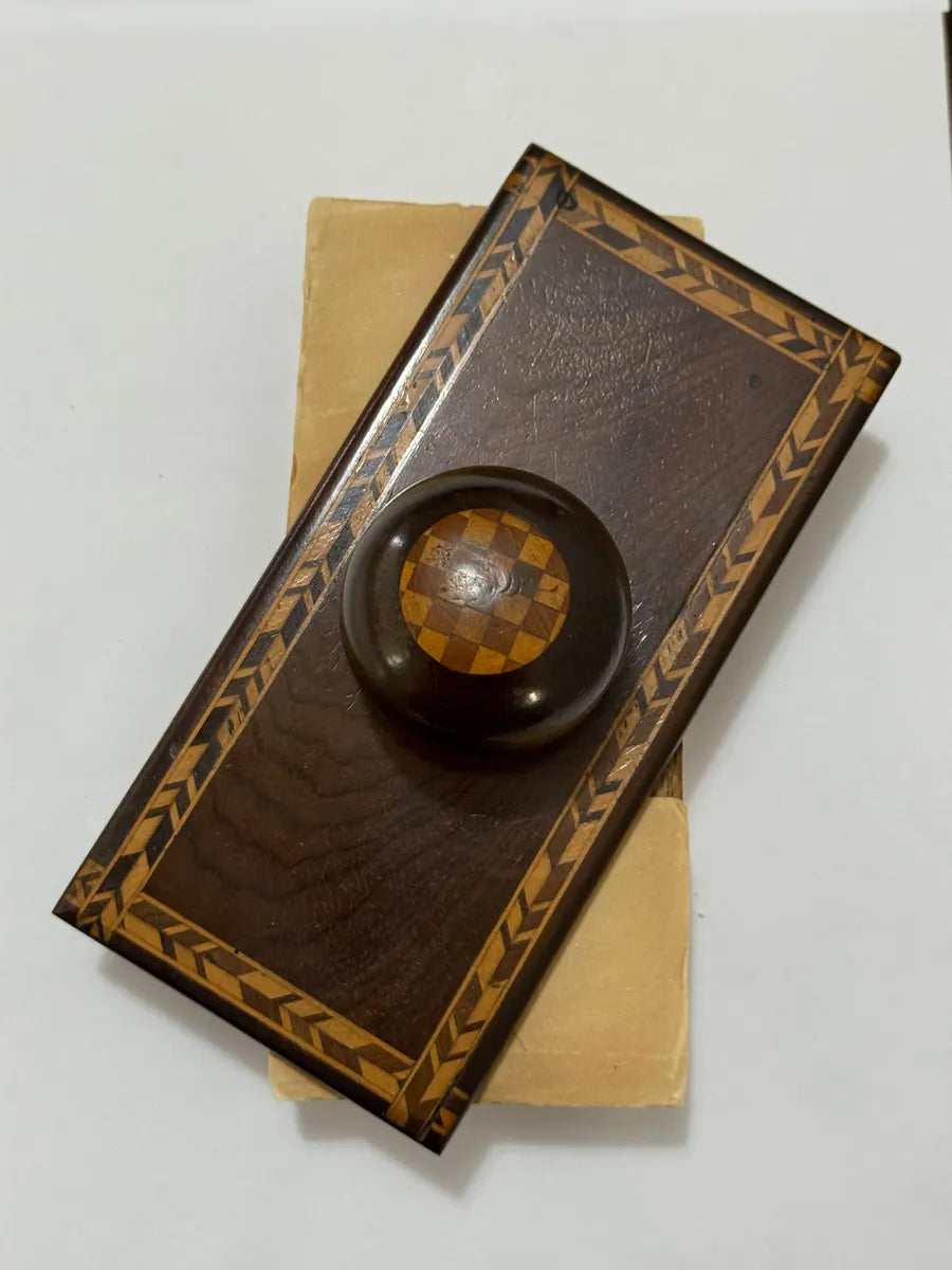 Carimbo Secador De Tinta Antigo Em Madeira Marchetaria