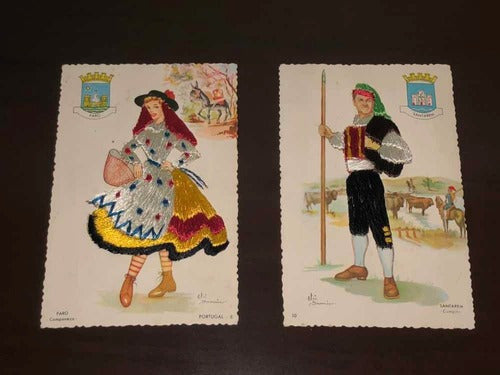 Cartão Postal Antigo Bordado Fios De Seda Portugal / Espanha