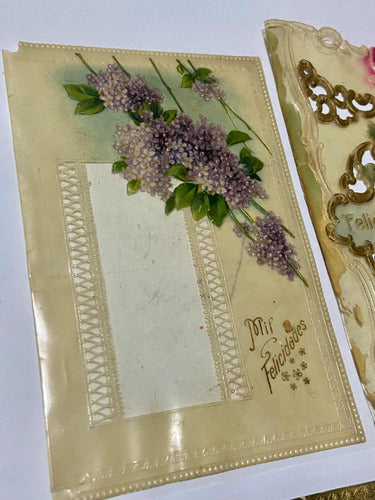 Cartão Postal Bilhete Antigo Flores Rosas Em Relevo