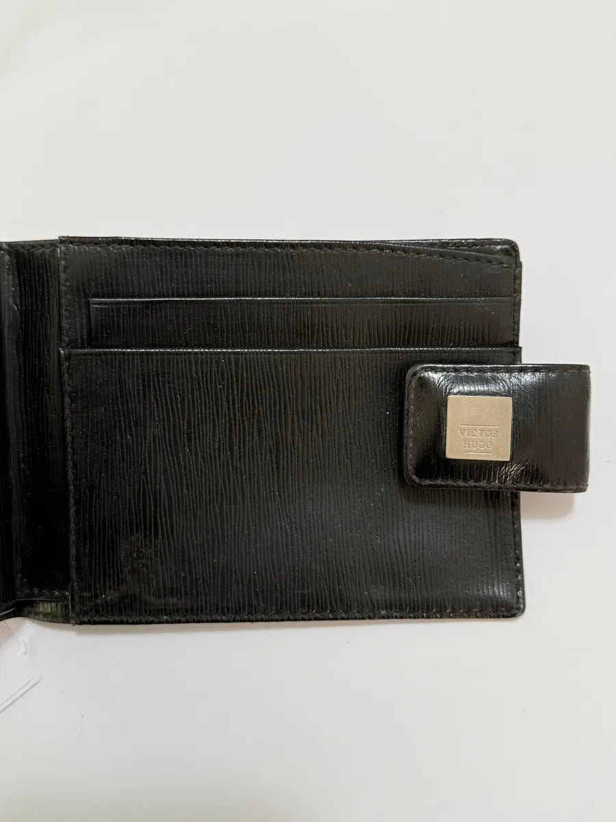 Carteira original Victor Hugo em couro legítimo preto, design clássico com fecho metálico personalizado.