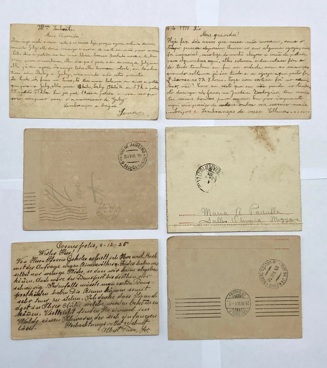 Lote de Bilhetes postais oficiais da República dos Estados Unidos do Brasil, datados do final do século XIX e início do século XX. Peças autênticas de época, com selos impressos e carimbos postais originais. Endereçados e manuscritos, preservam a história das comunicações no Brasil.