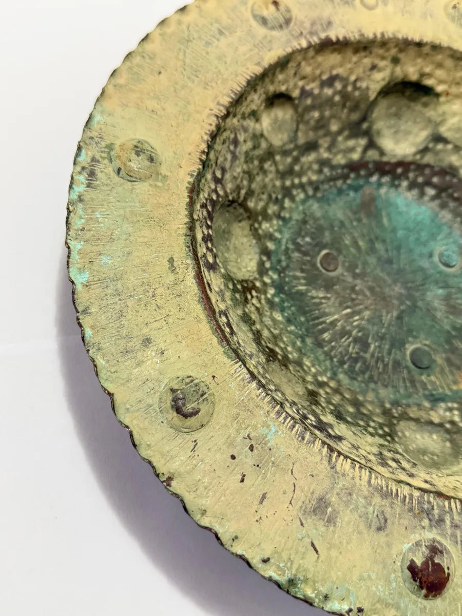 Centro De Mesa Antigo Em Cobre Martelado 23cm