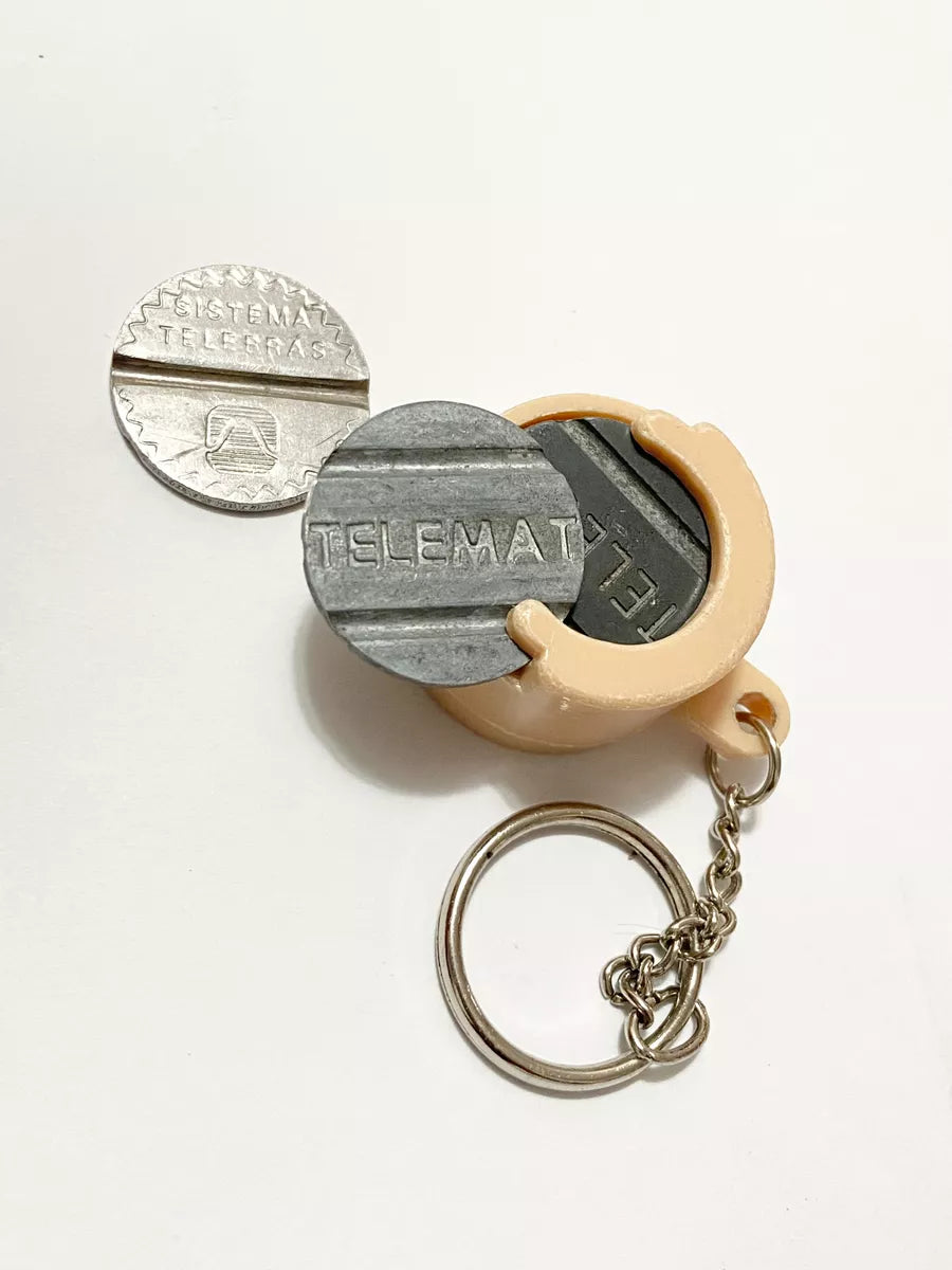 Chaveiro Antigo Porta Fichas Telefônicas Com Fichas Bege