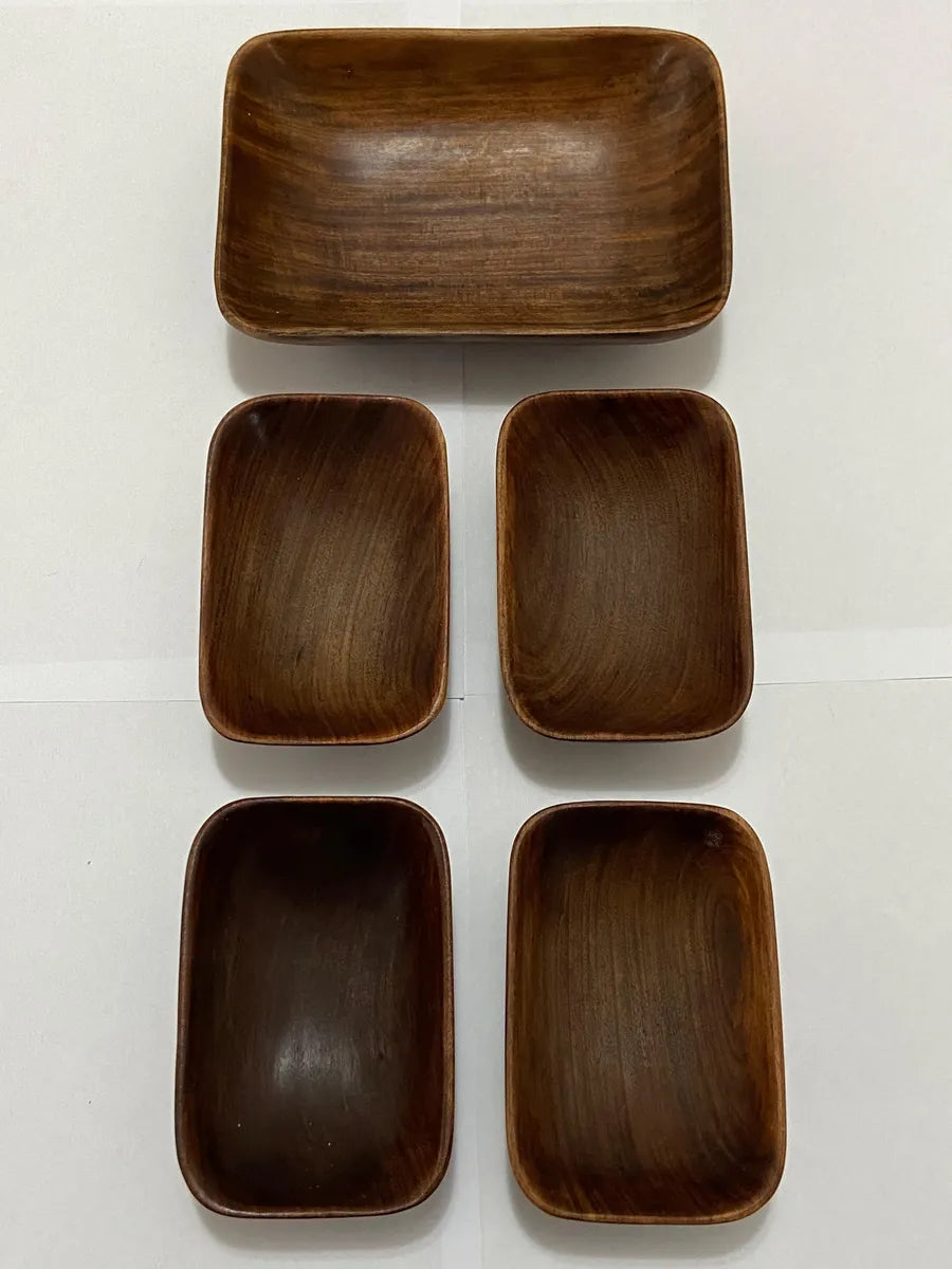 Conjunto Tigelas Retangulares Em Jacarandá Vintage