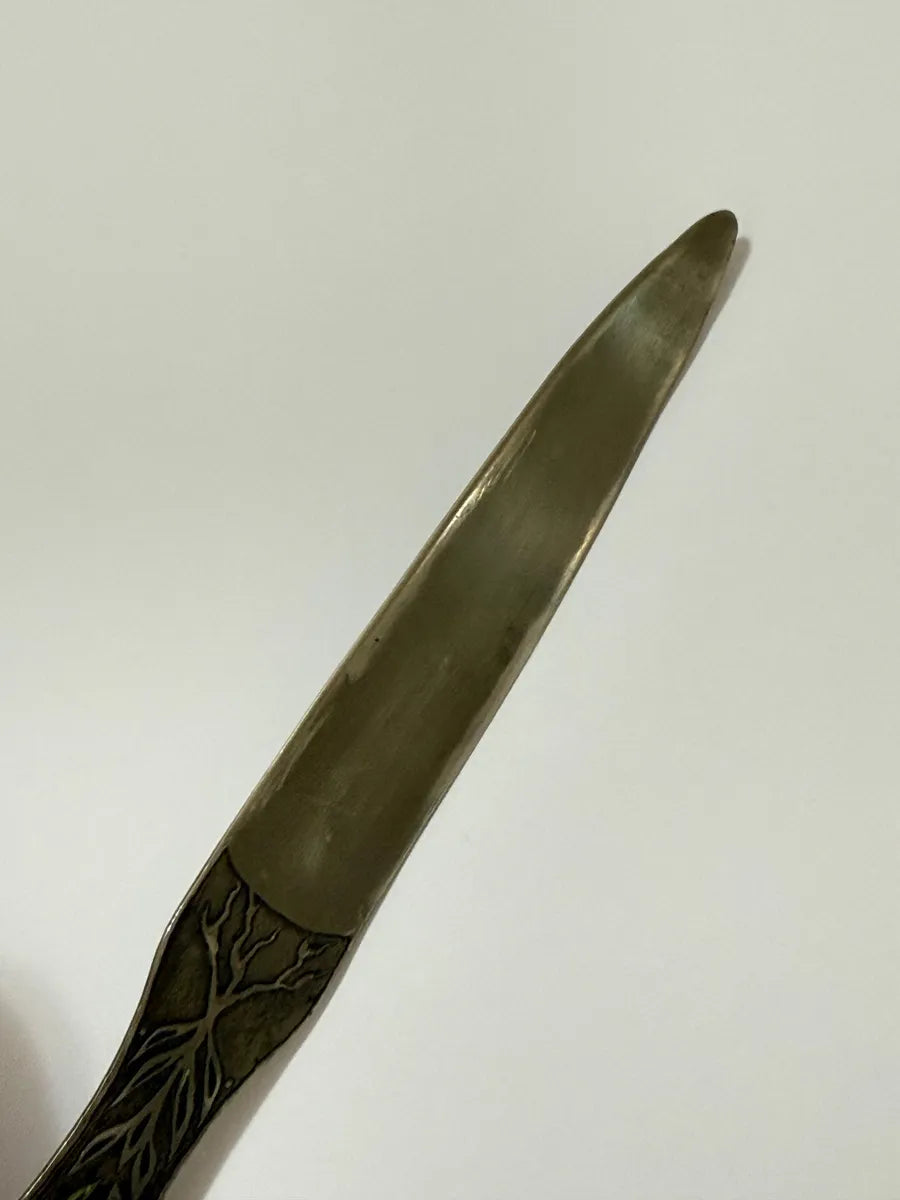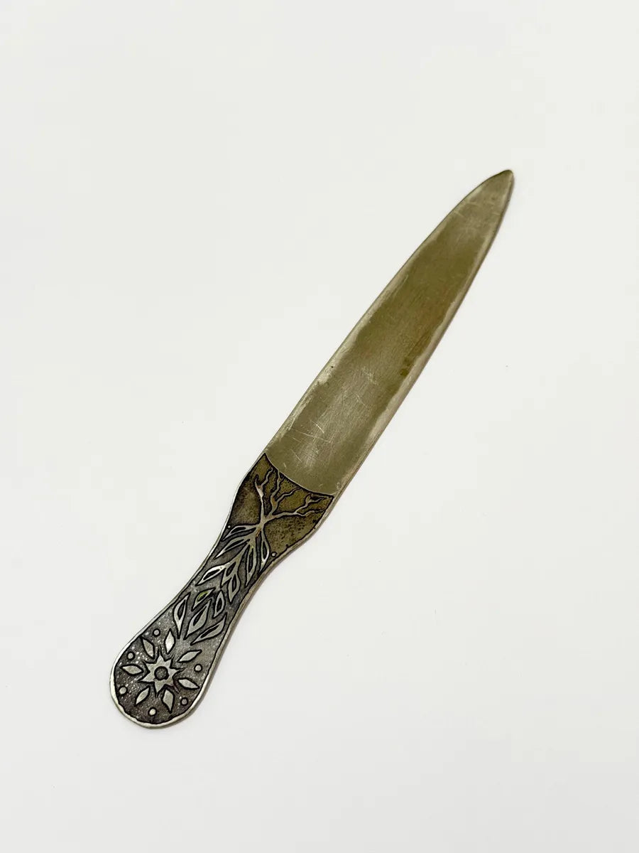 Faca Antiga Decorada Em Relevo Floral - 15,5cm Prateado