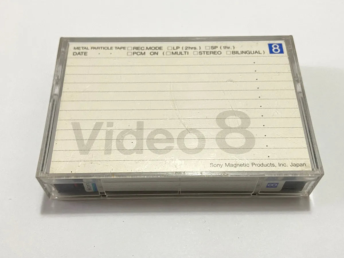 Fita cassete antiga original Sony Video8 modelo P6-60MP, do tipo MP (Metal Particle), ideal para reprodução ou arquivamento de vídeos gravados em filmadoras compatíveis com o formato Video8. Acompanha estojo plástico original e está bem conservada.