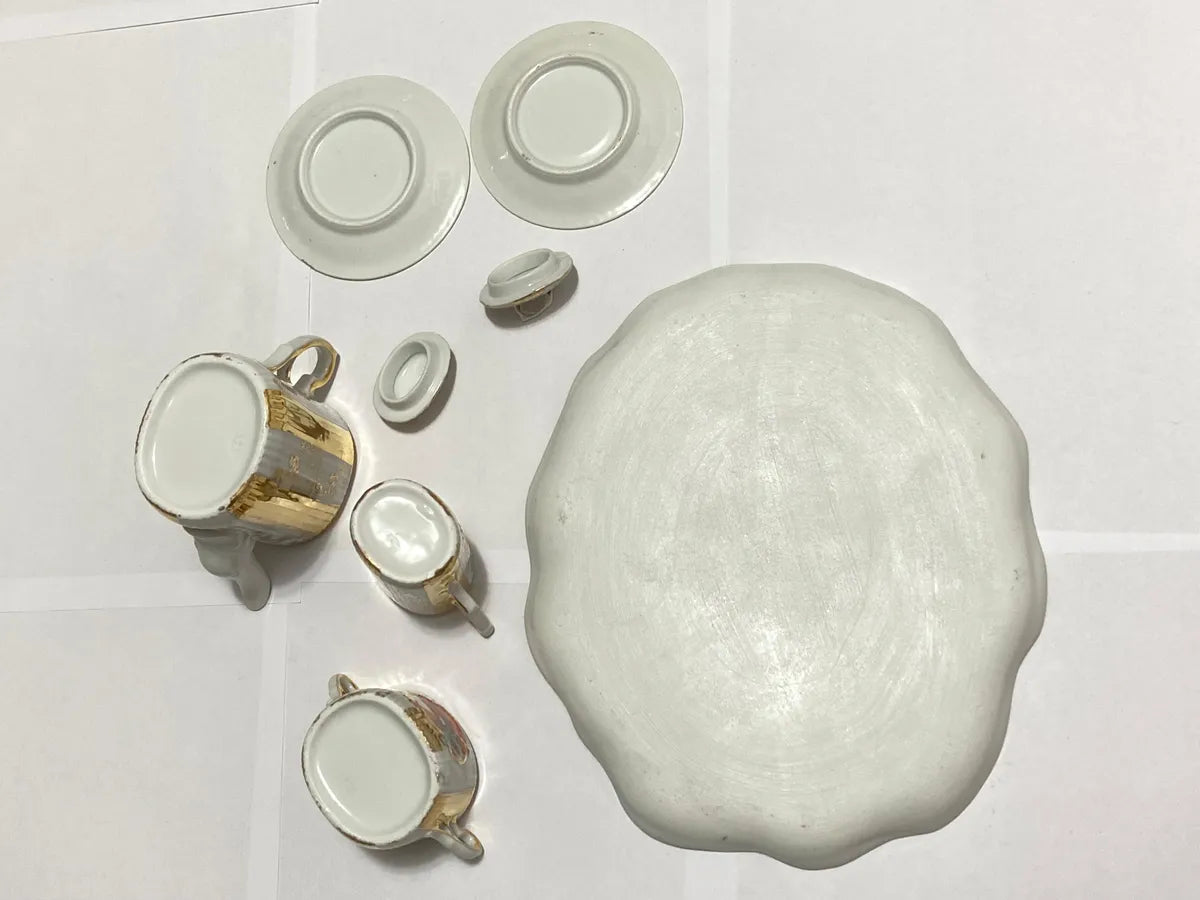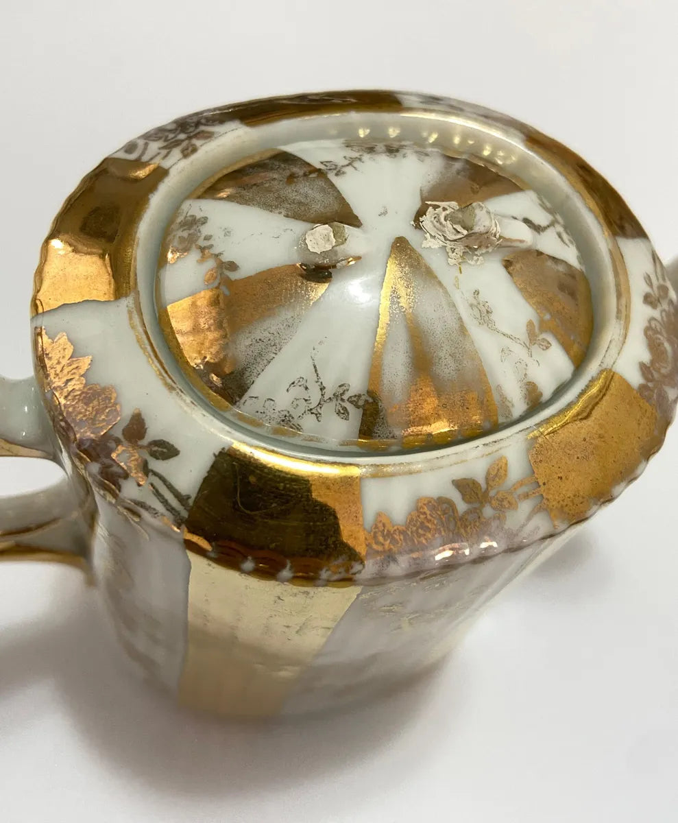 Jogo De Chá Antigo Porcelana Dourada Parabéns
