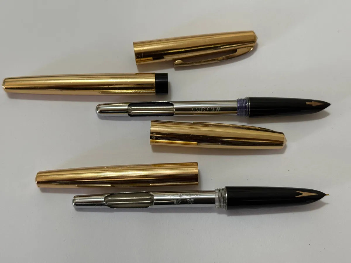 Kit Canetas Antigas Hero Wing Sung Douradas Com Estojo