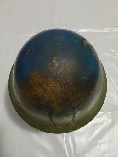 Luminária Antiga Opalina Pintada À Mão Paisagem