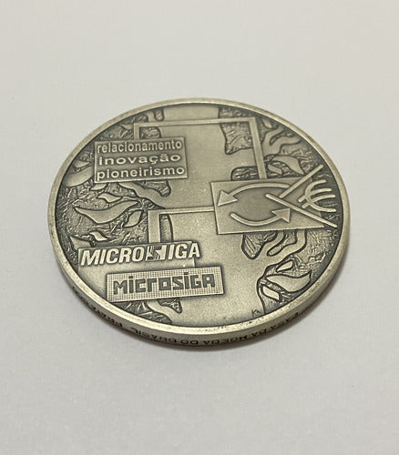 Medalha comemorativa dos 20 anos da Microsiga (1983–2003), produzida pela Casa da Moeda do Brasil em Prata 900.