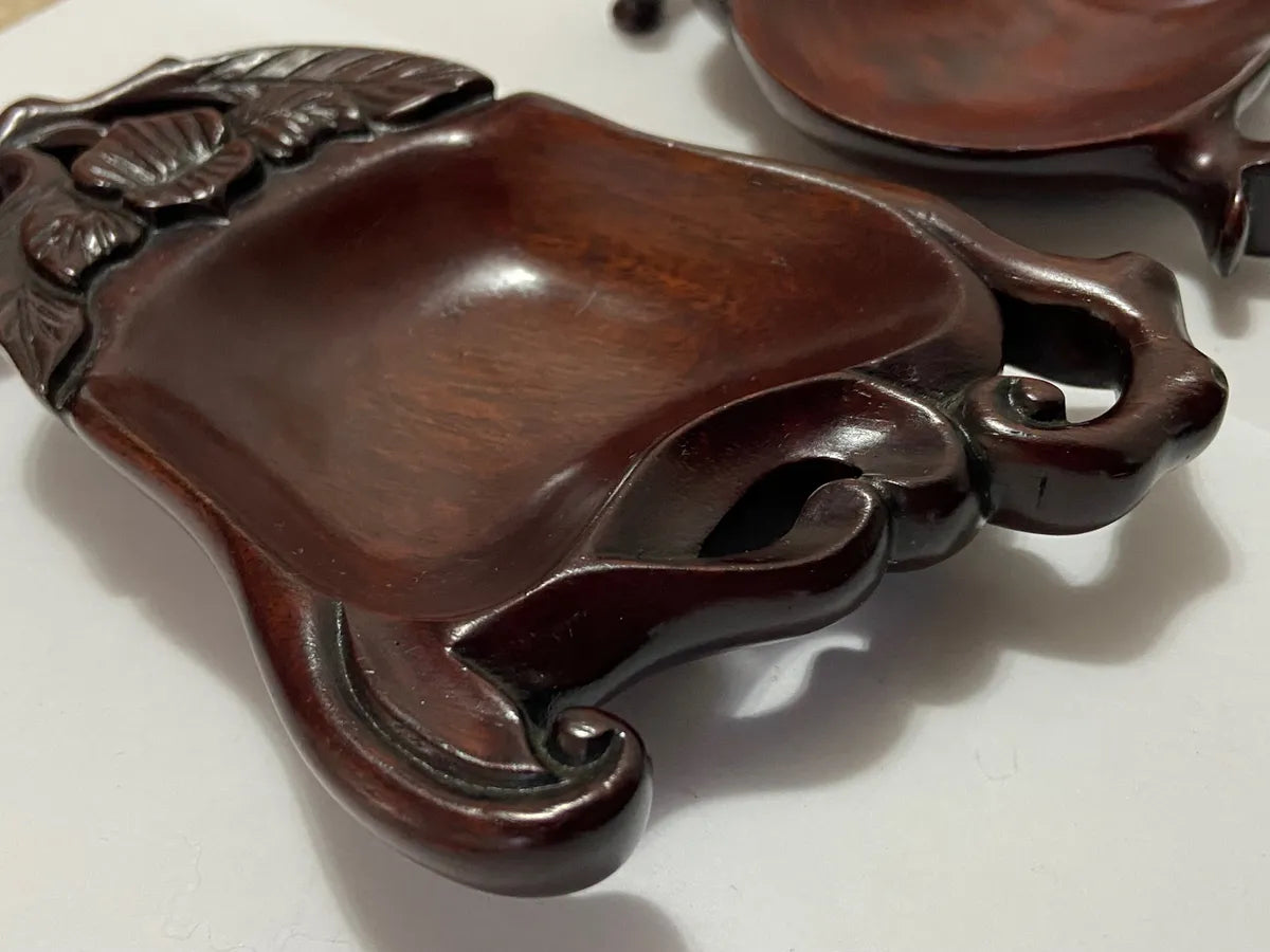Par De Tigelas Chinesas Antigas Em Madeira Nobre Esculpida