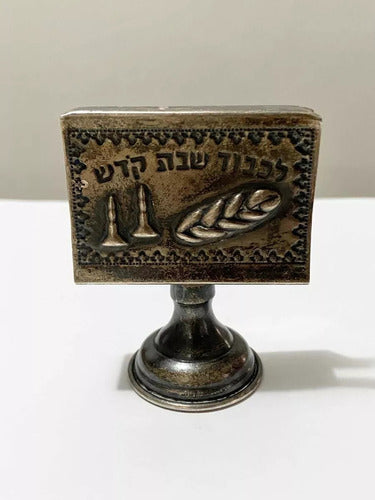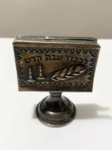 Porta Caixa Fósforo Antigo Prata Escrita Em Hebraico Shabat