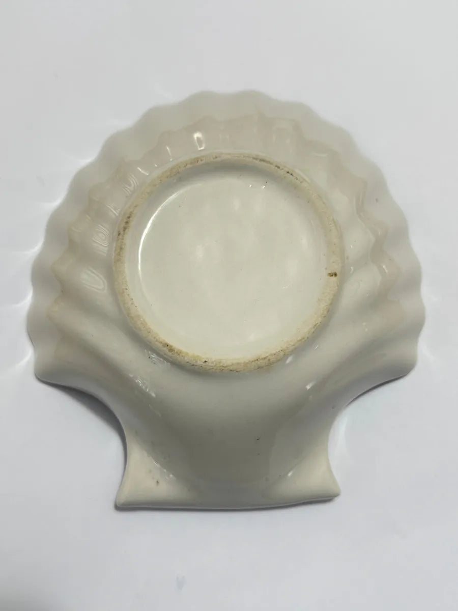 Prato Antigo Em Formato De Concha Detalhes Florais E Dourado