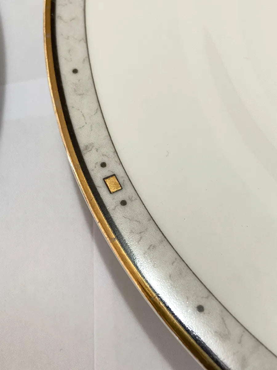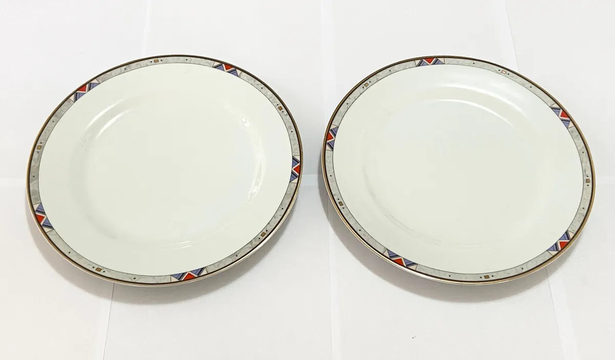 Conjunto com 2 pratos de porcelana Schmidt, linha Classic, borda decorada. Medida: 26 cm.