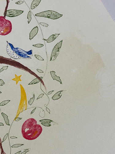 Quadro Gravura Antiga Árvore Da Vida Colorida E Assinada