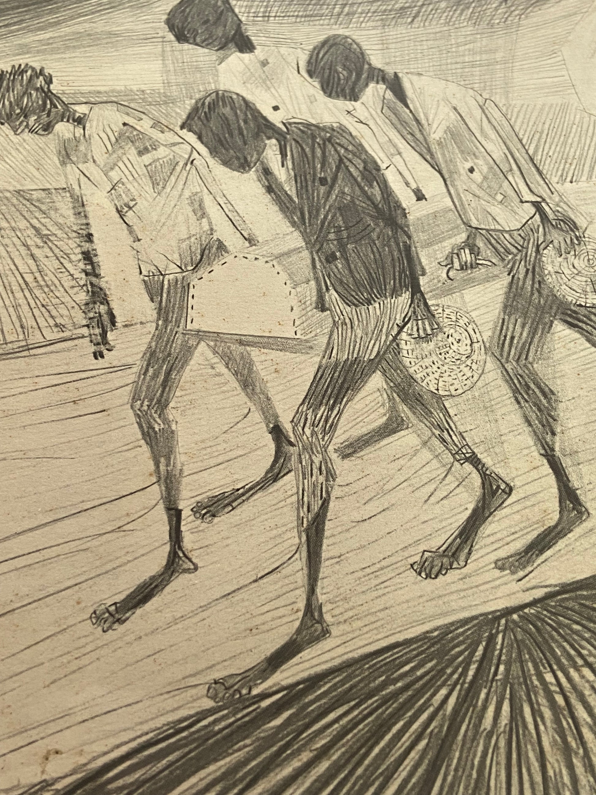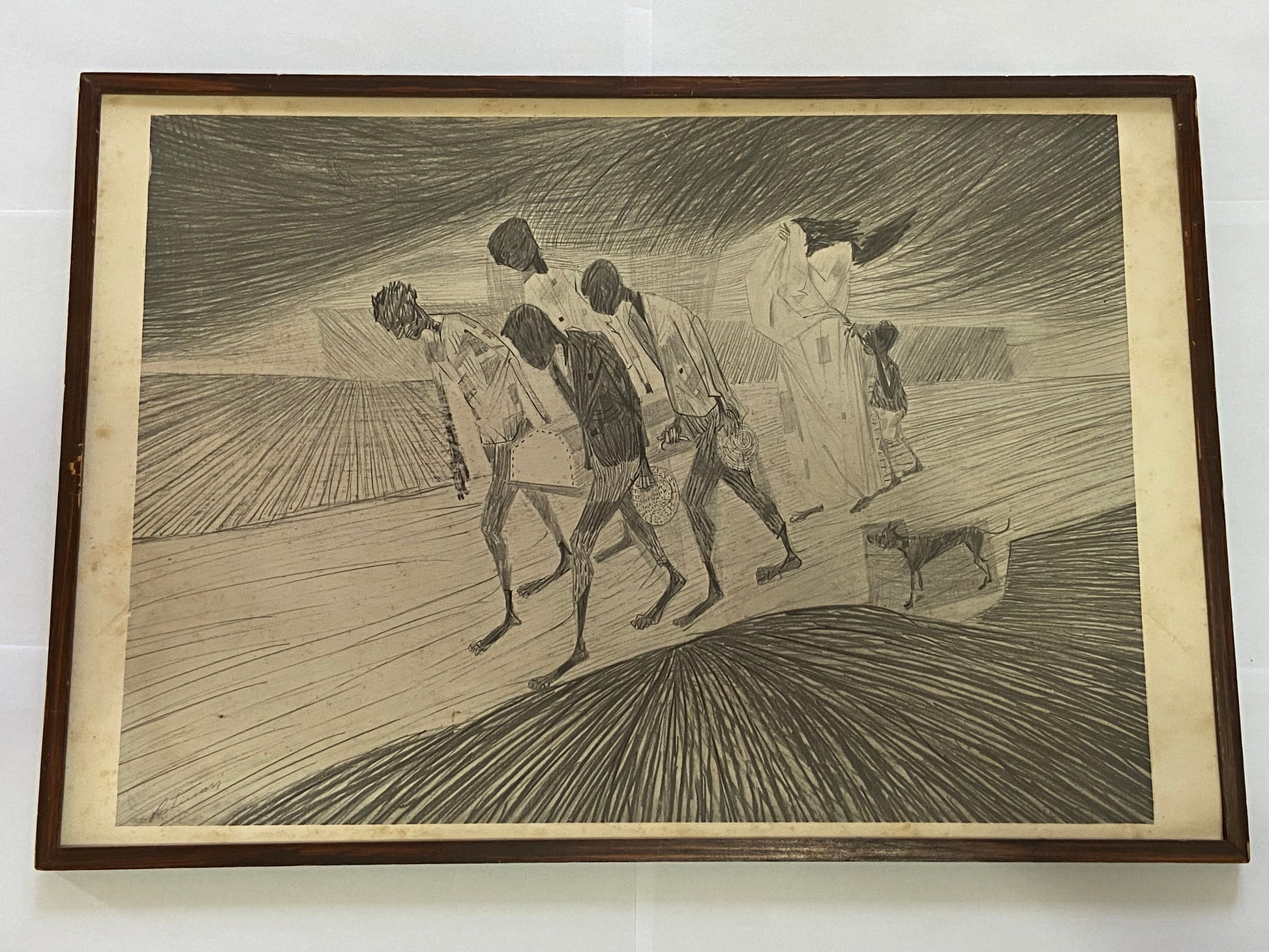 Quadro Gravura Antiga Desenho De Candido Portinari Assinada