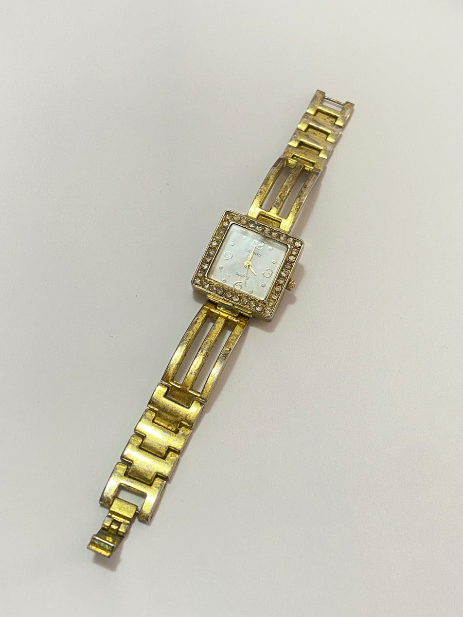 Relógio Antigo Catinet Quartz Com Pedras Quadrado Dourado