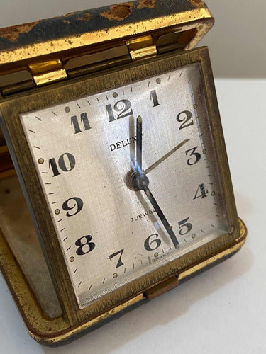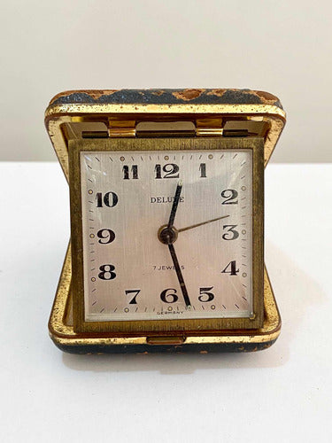 Relógio Antigo De Mesa Alemão Deluxe 7 Jewels Germany