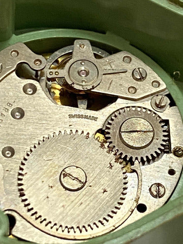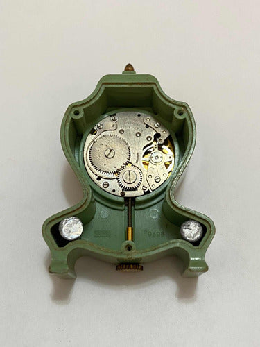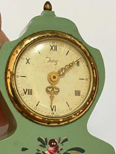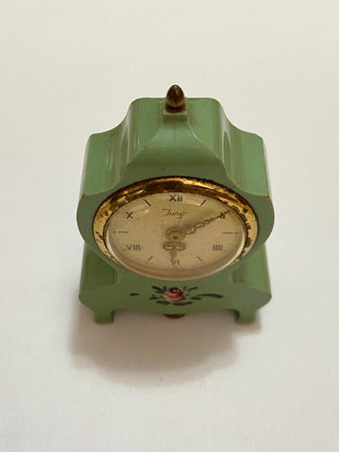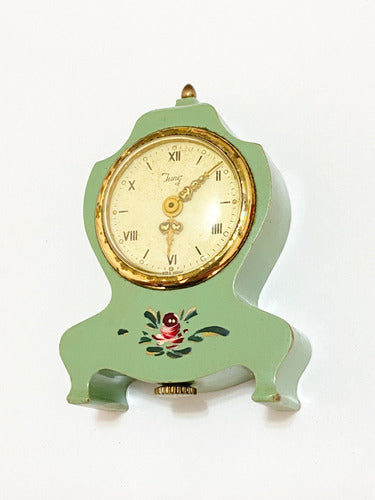 Relógio Antigo De Mesa Suíço Jung Com Pintura Pequeno Dourad
