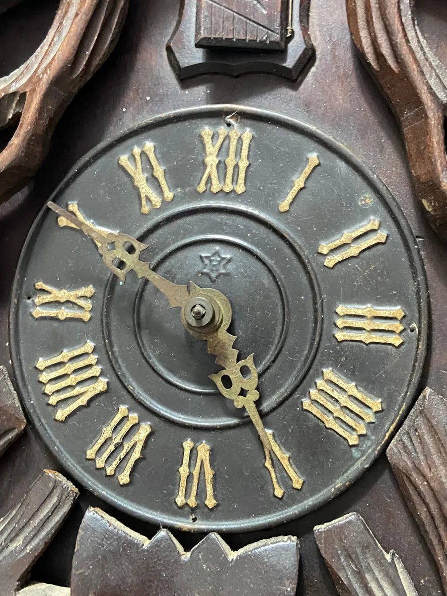 Relógio Cuco Antigo De Parede Marca H Em Madeira Entalhada Marrom Marrom