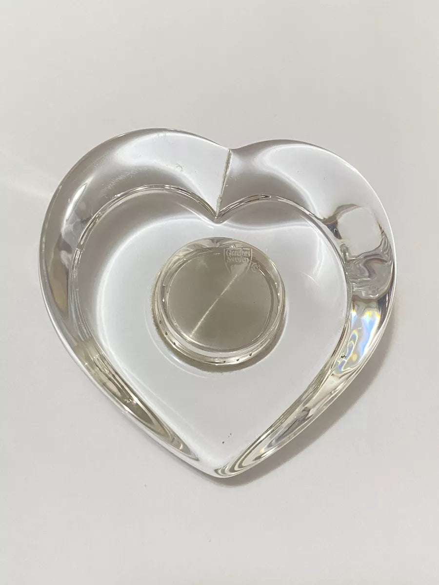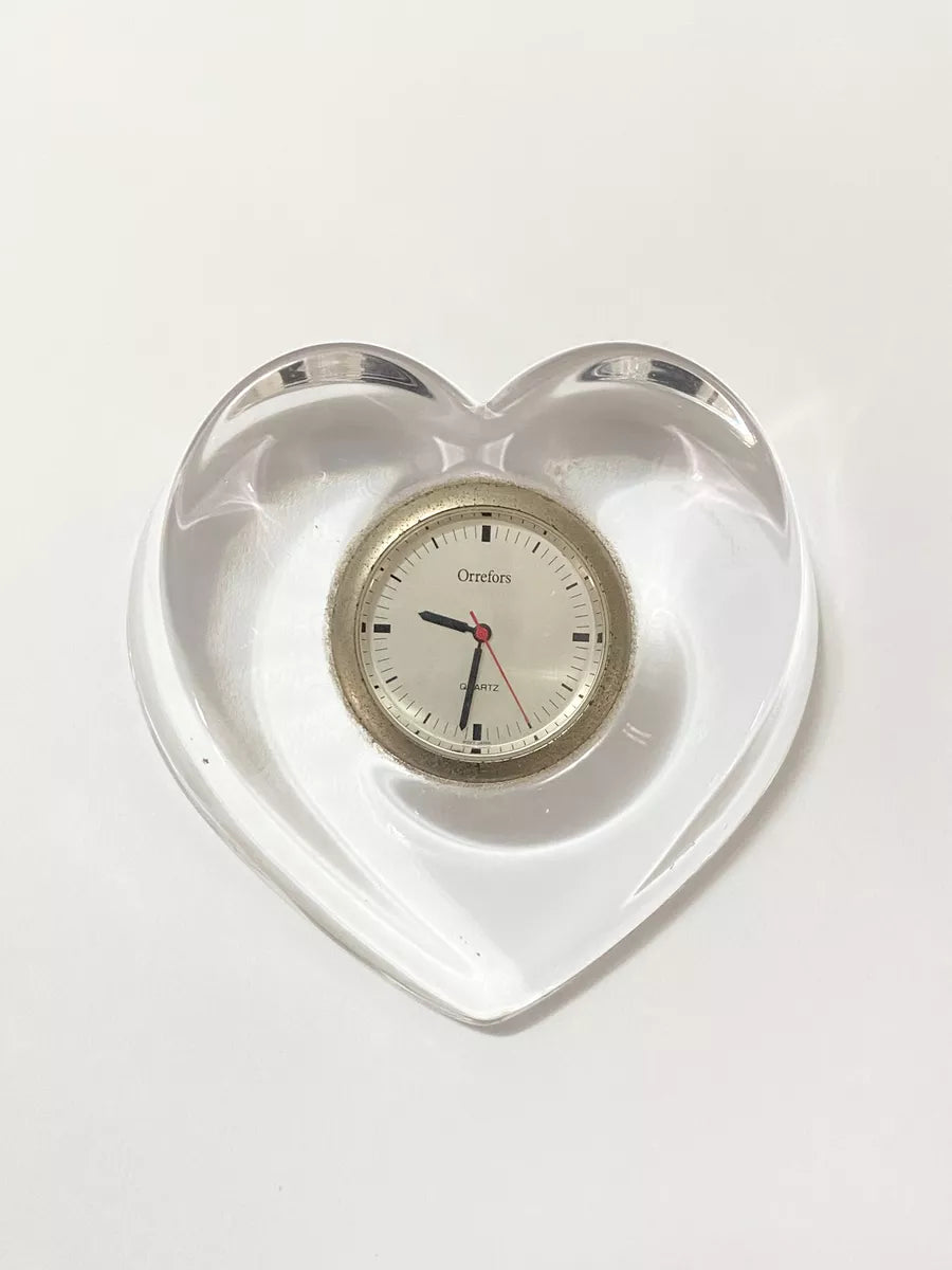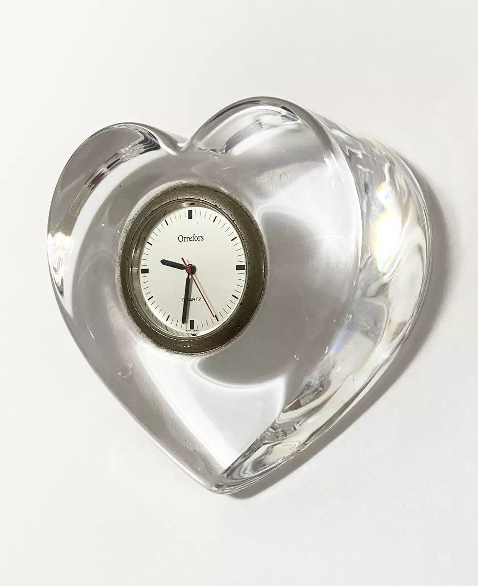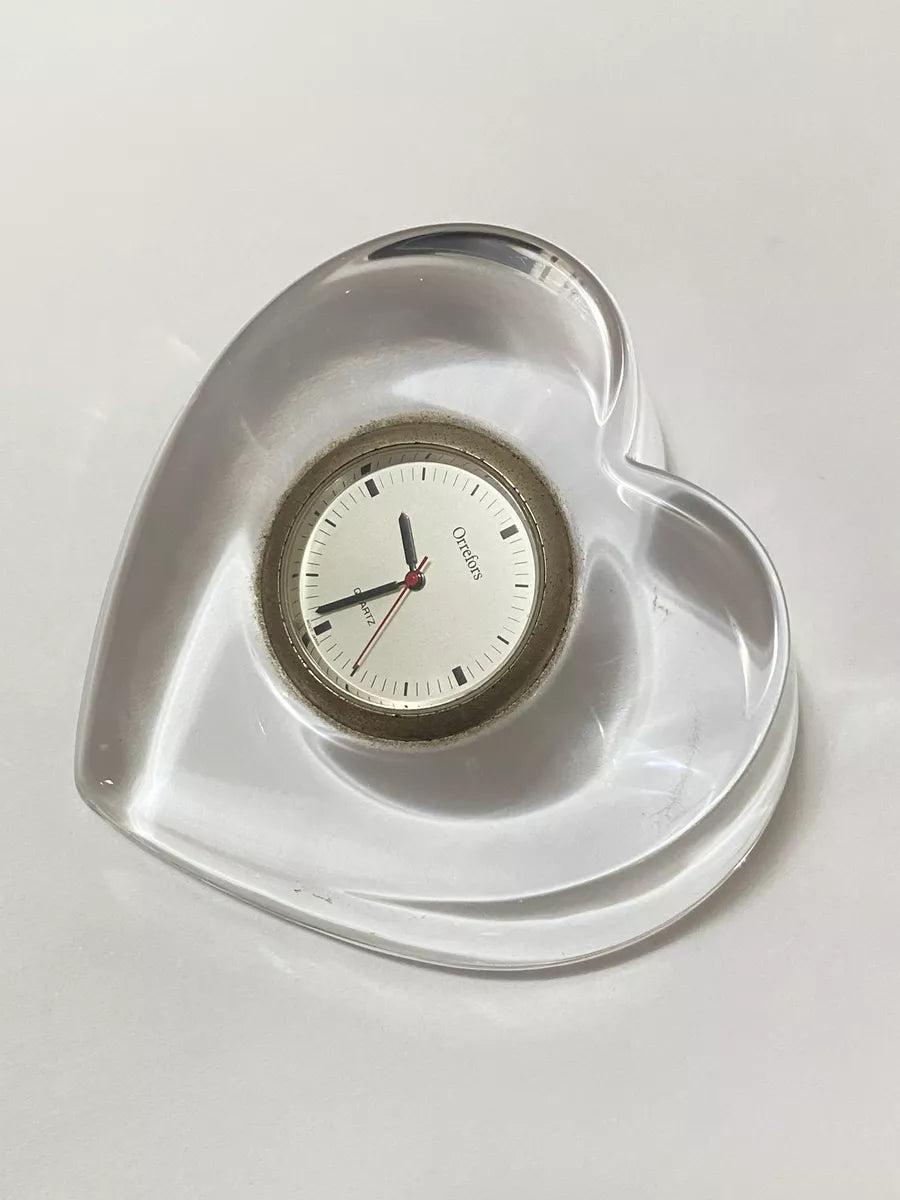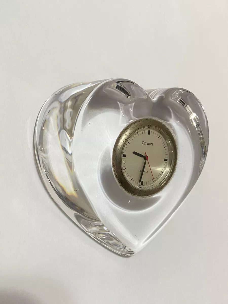 Relógio De Mesa Antigo Coração Em Cristal Sueco Orrefors
