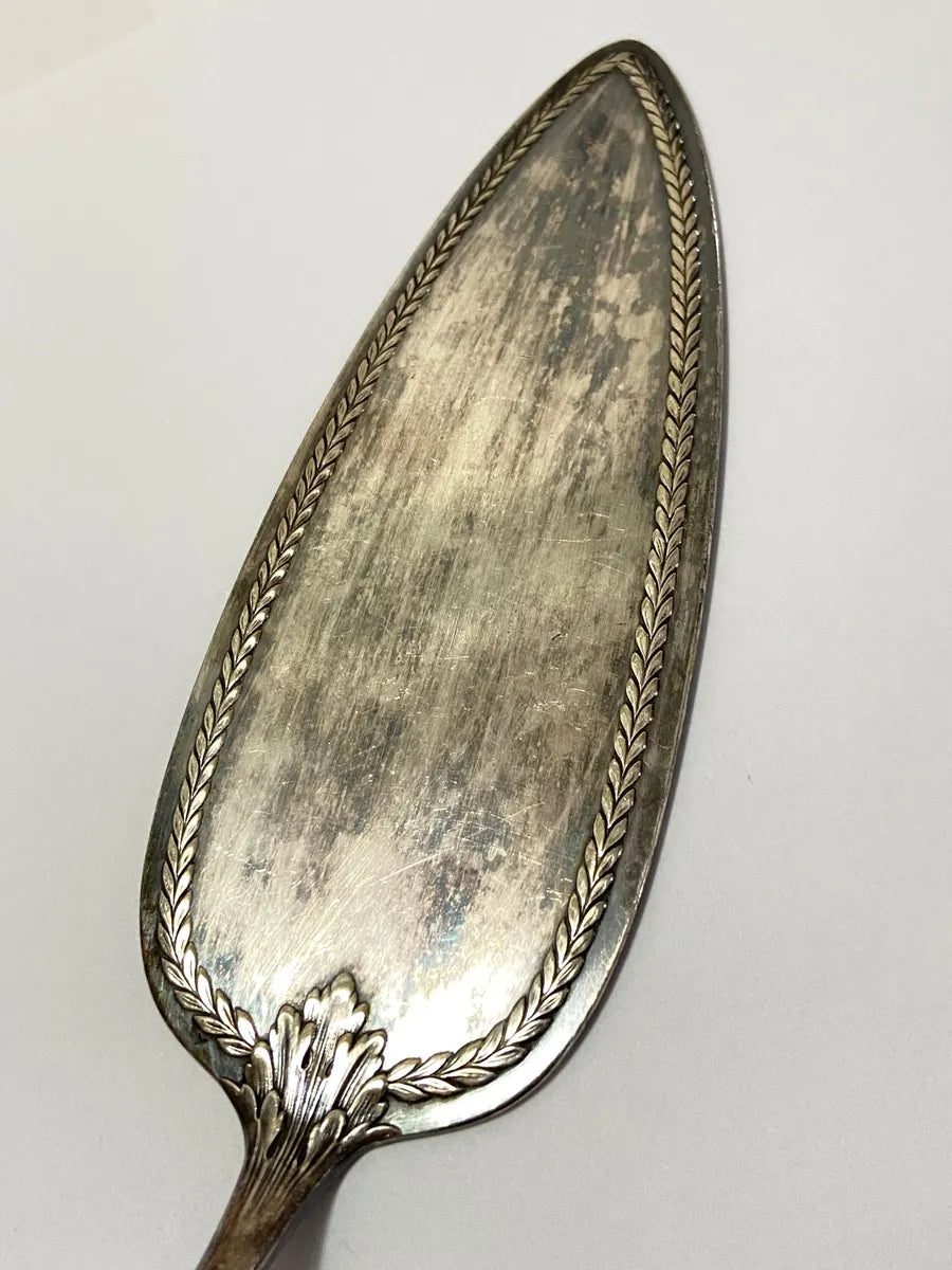 Pá de bolo antiga prata, com detalhes em relevo e marcação no verso (conforme fotos).