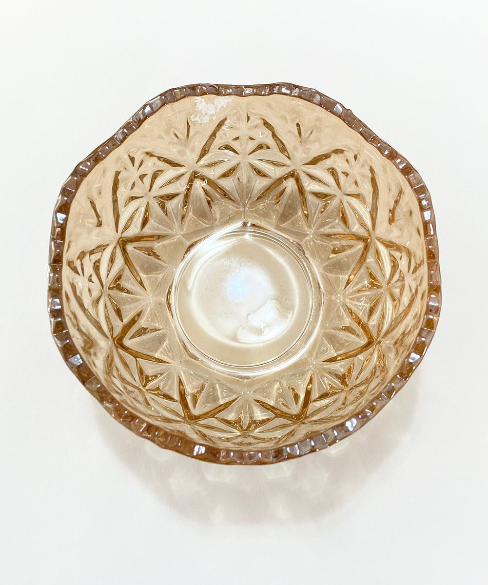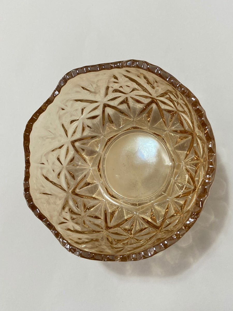Tigela De Vidro Antiga Âmbar Com Relevo Âmbar