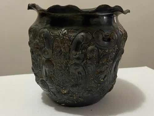 Vaso Antigo Em Metal Prata Mappin & Webb Com Desenhos Flor